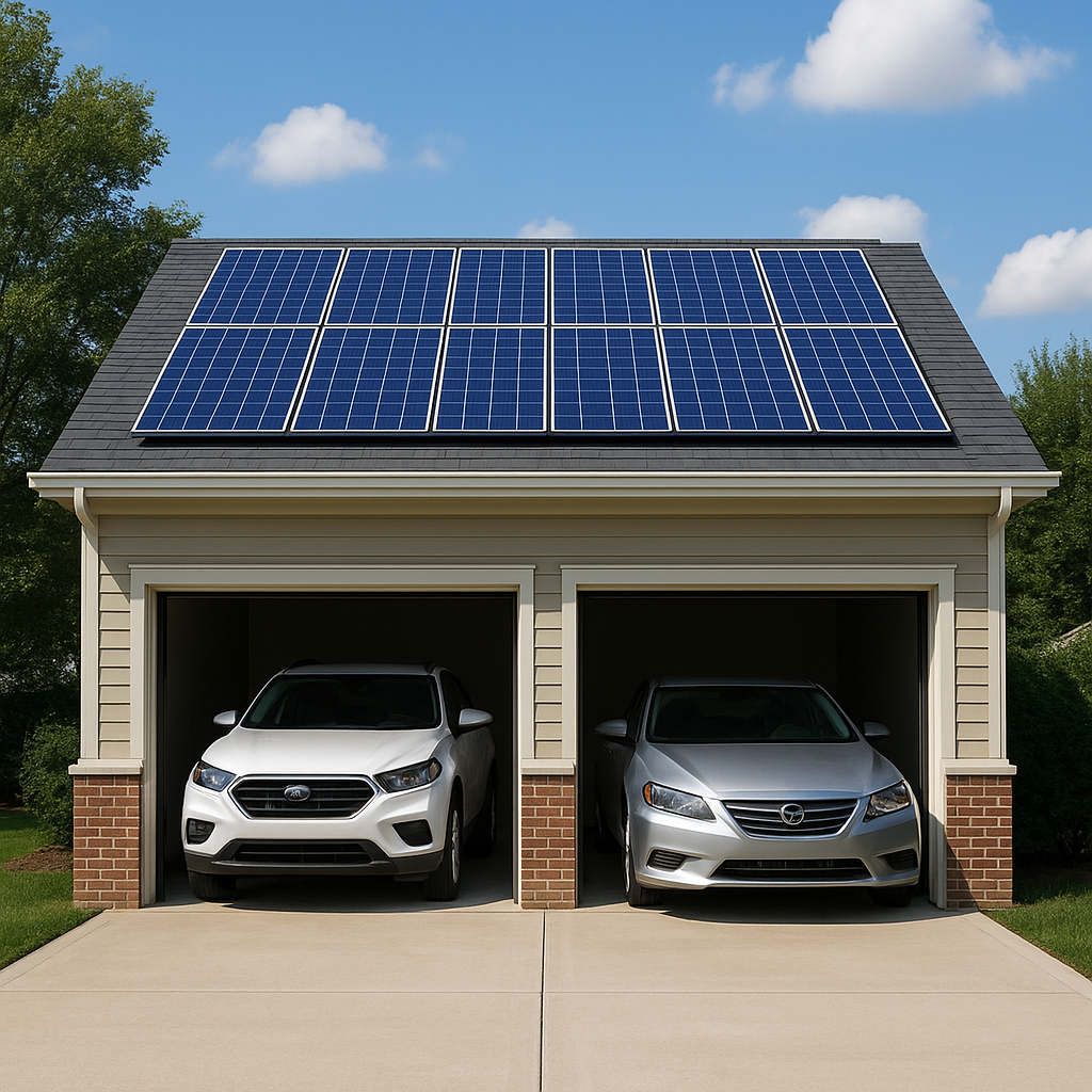 Durable and modern structures designed to generate solar power while protecting your vehicle. Ideal for residential driveways or commercial lots. - Solar Garages