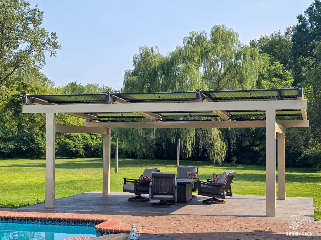 Stylish backyard enhancements built to support solar panels, providing both shade and sustainable power for your home or pool. Learn more at infinity-rack.com. - Solar Barns & Sheds